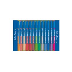 Nuovo pennarello a doppia punta. Realizzato con inchiostro base acqua. Una punta a pennello per tratti più morbidi e per sfumature e una punta larga a scalpello per grandi campiture e per tracciare linee. Nome e numero del colore sul pennarello e codice ean sul fusto. Confezione composta da 15 colori assortiti.