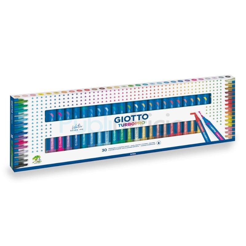 Pennarelli Giotto TurboPro doppia punta scalpello-pennello - conf. da 30 colori assortiti - F427900