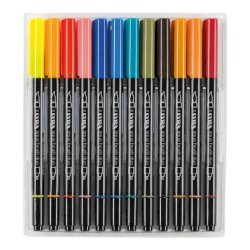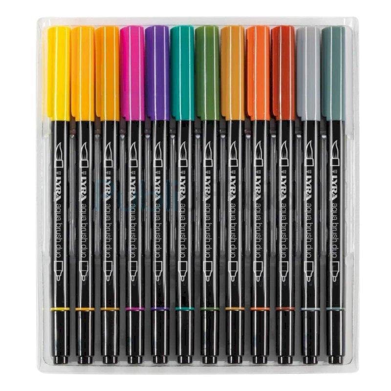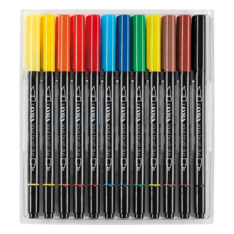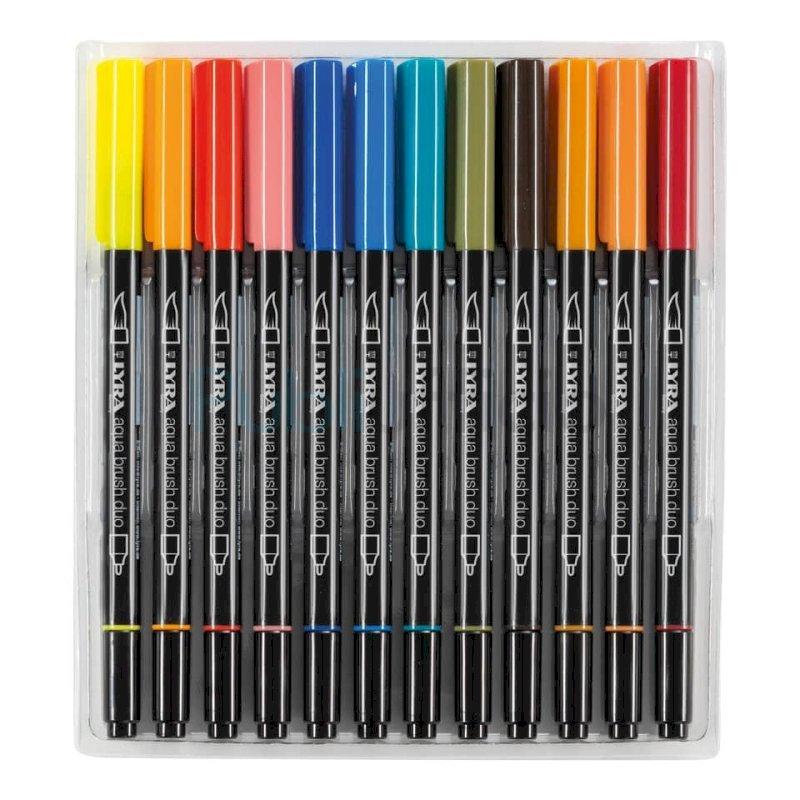 Aqua Brush Duo è una penna con punta a pennello per artisti, designers e amatori di ogni età. Le due punte sono estremamente resistenti e consentono un lungo impiego senza perdere la qualità iniziale. Da un lato la punta a pennello (4 mm) permette di utilizzare tecniche simili alla pittura. L'altro pennino (2 mm) permette di tracciare linee sottili e precise per immagini perfette. Gli inchiostri a base d'acqua possono essere mischiati tra loro. Astuccio appendibile da 36 colori assortiti.
