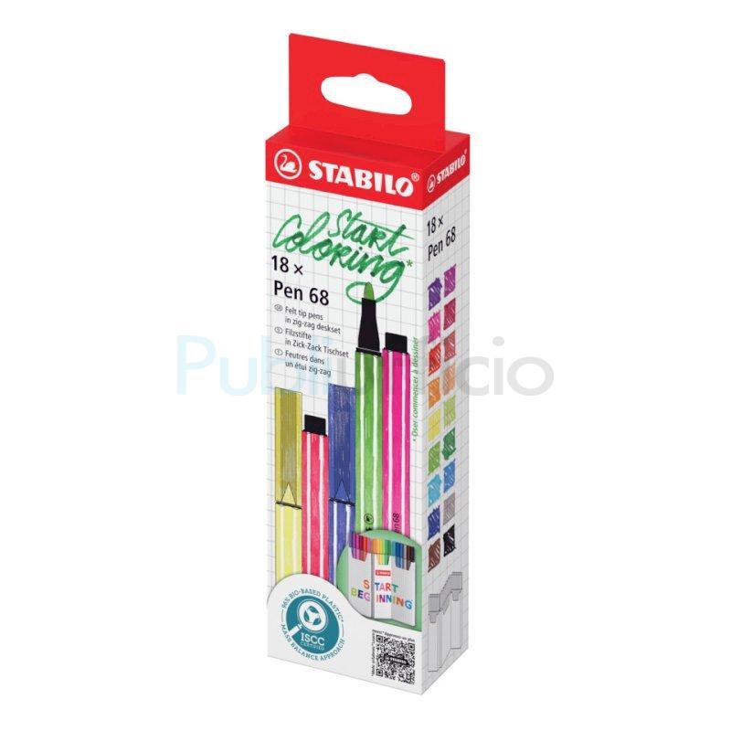 Pennarelli Stabilo Pen 68 astuccio ZigZag - tratto 1 mm - conf. 18 colori assortiti - 6818/8