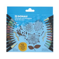 Pennarello Dual Brush a doppia punta Donau in conf. 12 colori assortiti - 322293