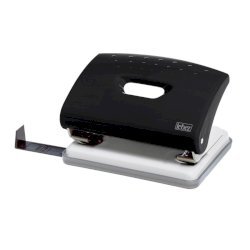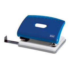Perforatore a 2 fori impugnatura in ABS e base in metallo. Guida regolabile, perfora fino a 16 fogli da 80 gr. Passo 8 cm, foro 6 mm. Disponibile in 5 colori assortiti.