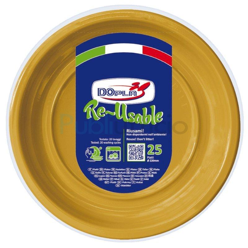 Piatti fondi in PS Dopla Reusable Ø 205 mm oro - conf. 25 pz - 11859