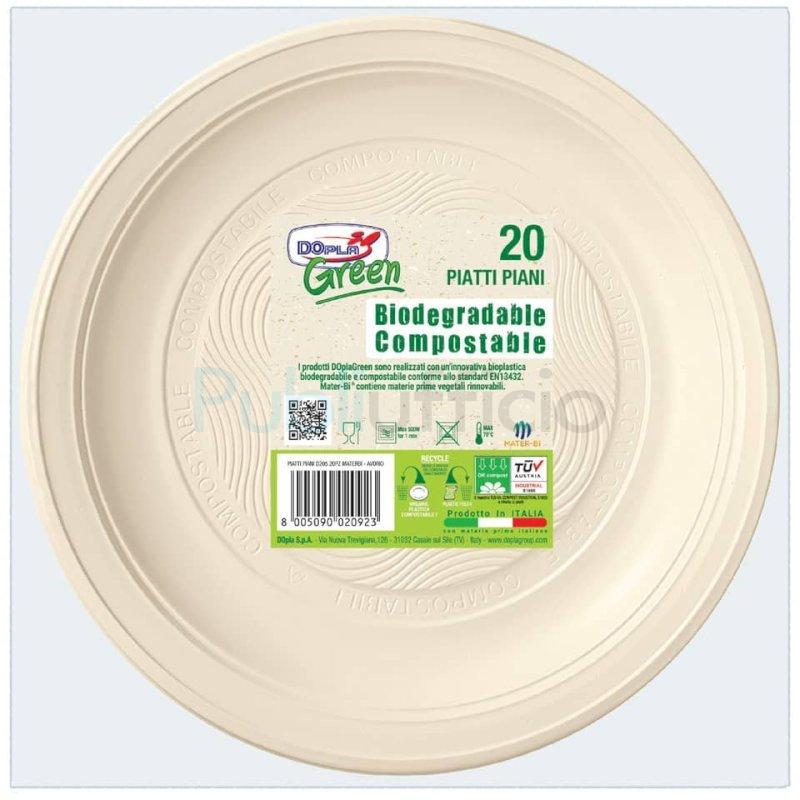 Piatti piani biodegradabili e compostabili Dopla Green avorio Ø 205 mm - conf. 20 pz - 11796