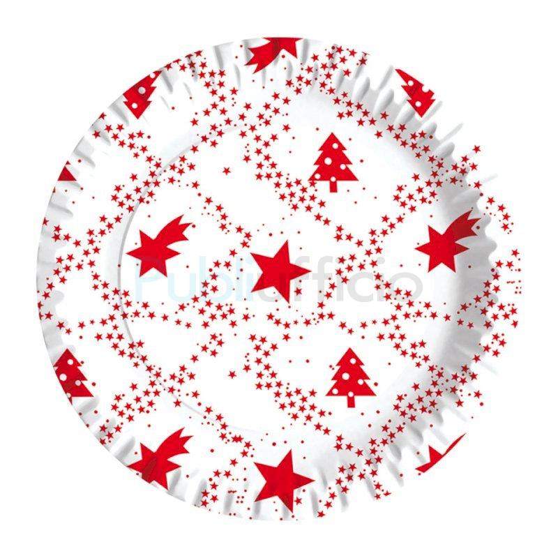 Piatti piani carta fibra vergine Dopla Red Xmas Ø 230 mm - conf. 10 pz - 11816