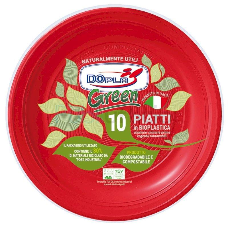 Piatti piani Dopla Green biodegradabili e compostabili - Ø 220 mm rosso - conf. 10 pz - 40048