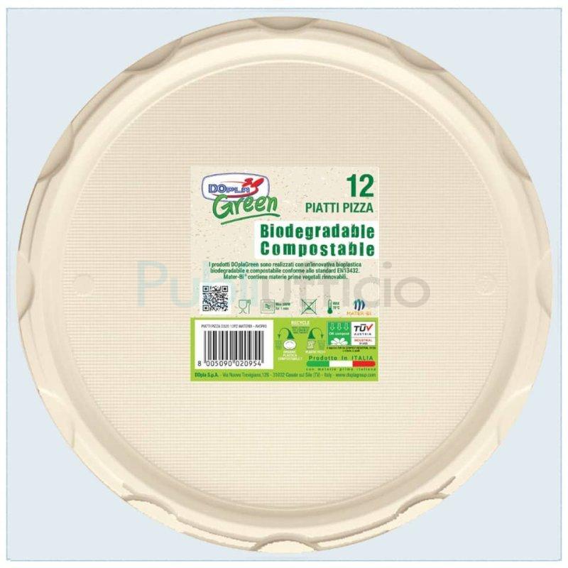 Piatti pizza biodegradabili e compostabili Dopla Green avorio Ø 320 mm - conf. 12 pz - 11798