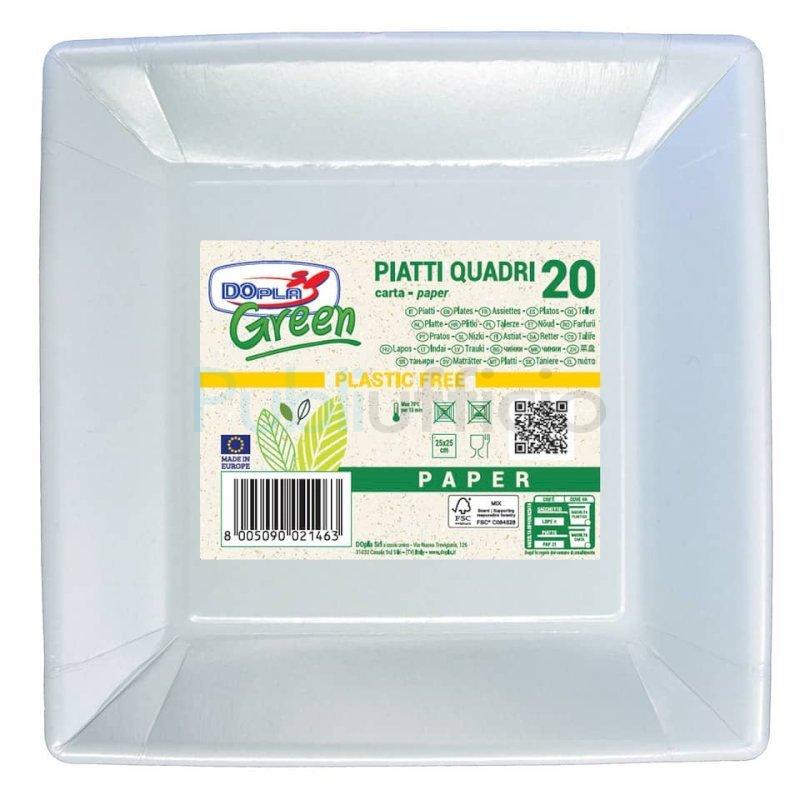 Piatti quadrati Dopla Green carta fibra vergine - 250x250 mm bianco - conf. 20 pz - 11804