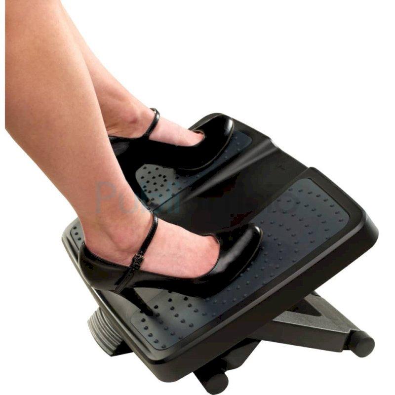 Solleva piedi e gambe per alleviare la tensione alla parte inferiore della schiena. Regolazione dell'altezza con sistema a forbice che permette tre livelli di altezza della piattaforma: 100mm, 135mm & 165mm, superficie con rilievi massaggianti. Permette un movimento oscillante che fa bene alla circolazione. La forma della piattaforma incoraggia una posizione corretta dei piedi.