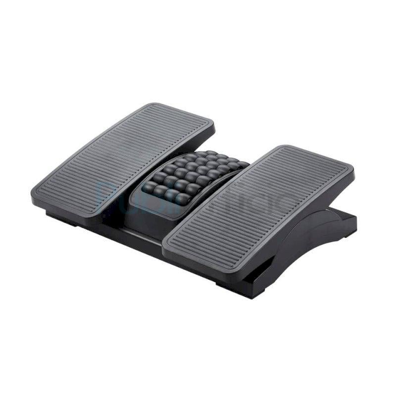 Poggiapiedi in plastica regolabile in altezza nero. Altezza regolabile tra 10,5 e 13 cm. Dimensioni: 43 x 32 x 11 cm. Migliora la postura e la circolazione tenendo in alto i piedi. Poggiapiedi con possibilità di regolare differenziando l'altezza dei due piedi. Fornito di rulli massaggianti al centro.
