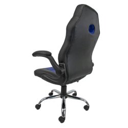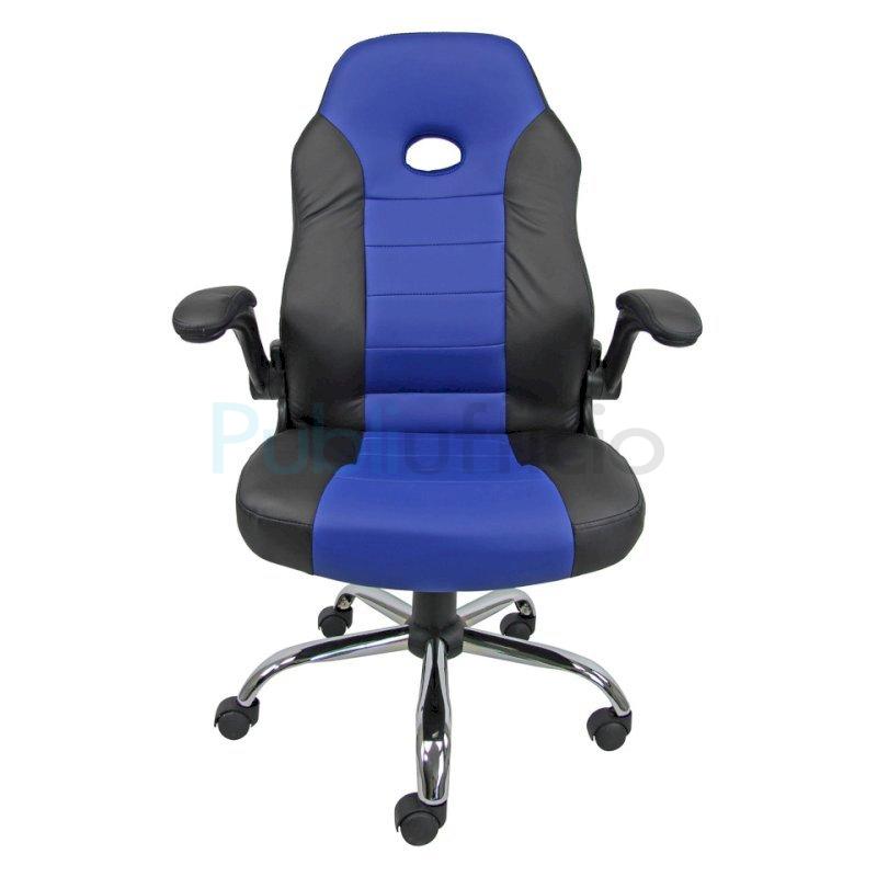 Poltrona direzionale girevole in PU, colore nero e blu. Base verniciata. Fornita con braccioli neri. Taglia M. Utilizzo consigliato moderato: 6h. Portata massima 100 Kg. Struttura faggio multistrato. Base nylon. Ruote Ø 50 mm nylon. Sedile: materiale esterno: rivestita; materiale interno: faggio multistrato; spugna: spugna T 21 h 6,5 cm. Schienale: materiale esterno: rivestita; materiale interno: faggio multistrato; spugna: spugna T 18 h 6 cm. Meccanismi: elevazione a gas - schienale regolabile in altezza - meccanismo oscillante con blocchi dotato di variatore di spinta. Certificazioni: Gas certificato TUV. Altezza totale: 104-110 cm. Profondità totale: 65 cm. Altezza sedile (seduta da terra): 40-50 cm. Larghezza sedile: 48 cm. Larghezza del sedile con i braccioli: 64 cm. Profondità sedile: 44 cm. Altezza schienale: 68 cm. Larghezza schienale: 48 cm. Base: Ø 60 cm.