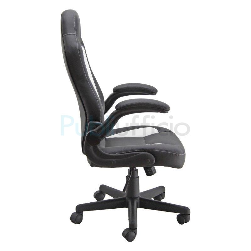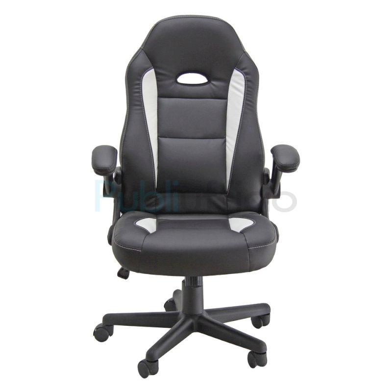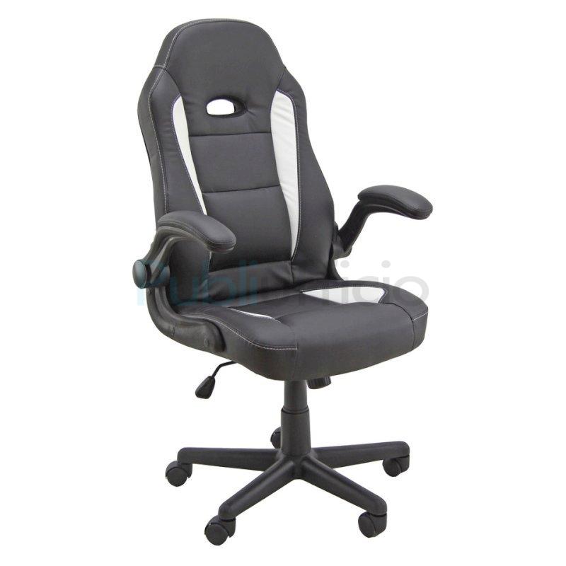 Poltrona direzionale girevole in PU, colore nero e bianco. Base verniciata. Fornita con braccioli neri. Taglia M. Utilizzo consigliato moderato: 6h. Portata massima 100 Kg. Struttura faggio multistrato. Base nylon. Ruote Ø 50 mm nylon. Sedile: materiale esterno: rivestita; materiale interno: faggio multistrato; spugna: spugna T 21 h 6,5 cm. Schienale: materiale esterno: rivestita; materiale interno: faggio multistrato; spugna: spugna T 18 h 6 cm. Meccanismi: elevazione a gas - schienale regolabile in altezza - meccanismo oscillante con blocchi dotato di variatore di spinta. Altezza totale: 104-110 cm. Profondità totale: 65 cm. Altezza sedile (seduta da terra): 41-50 cm. Larghezza sedile: 48 cm. Laghezza del sedile con i braccioli: 64 cm. Profondità sedile: 44 cm. Altezza schienale: 68 cm. Larghezza schienale: 48 cm. Base: Ø 60 cm.