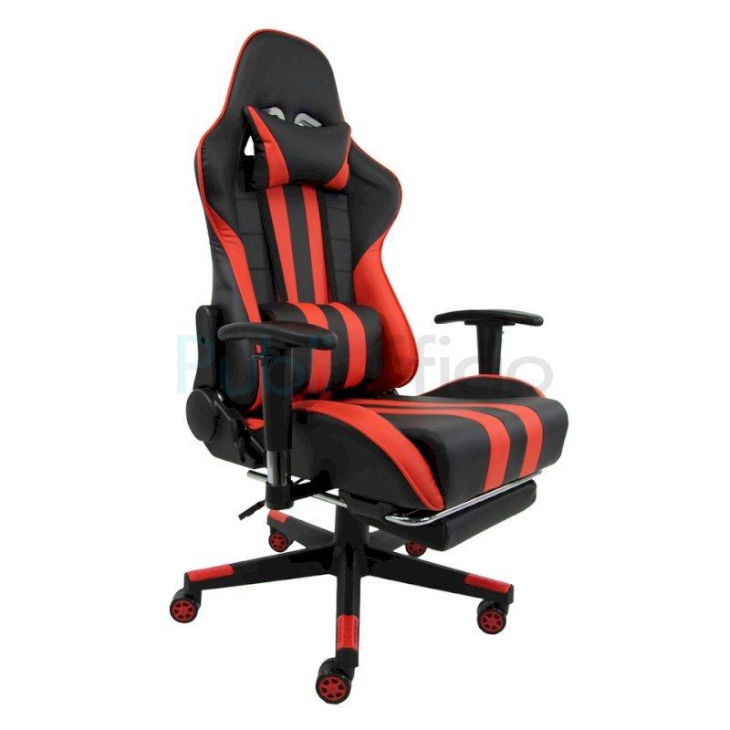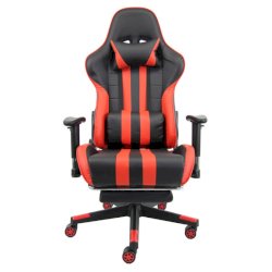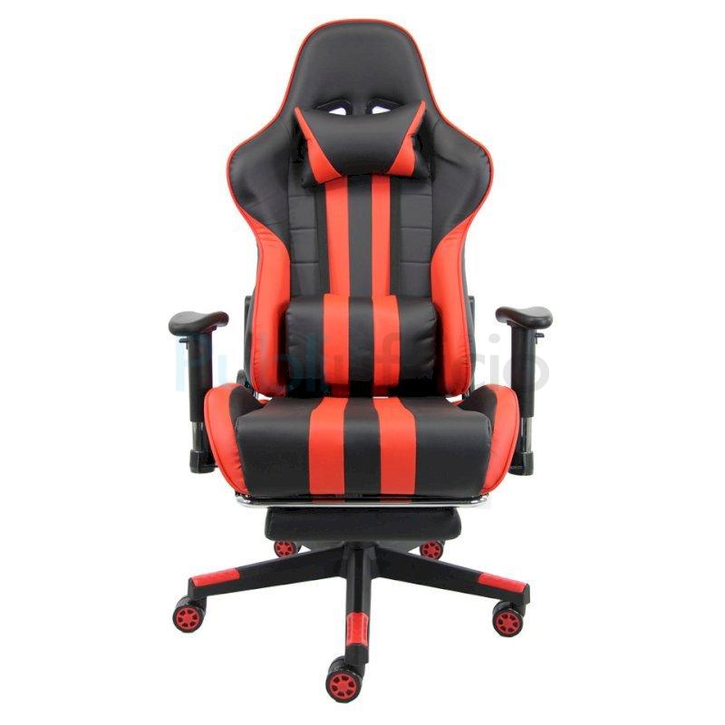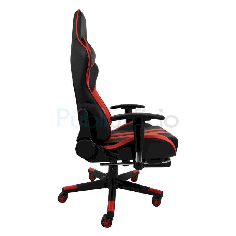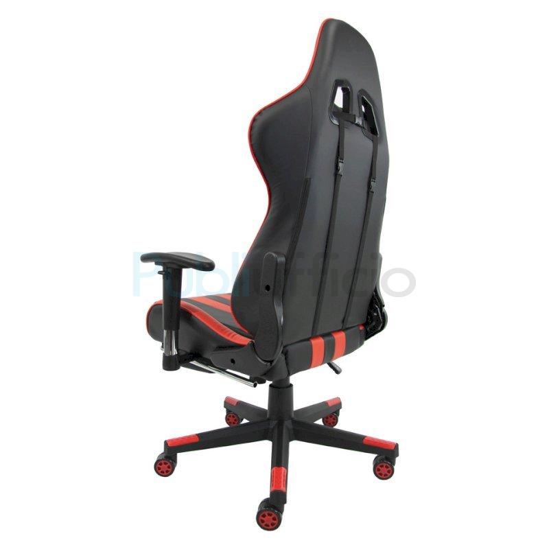 Poltrona da gaming girevole con rivestimento in sky nero/rosso. Fornita con braccioli regolabili 3D, supporto poggiagambe regolabile, cuscino per cervicale e cuscino lombare. Poggiapiede nero. Taglia L. Utilizzo consigliato INTENSO H24. Portata massima 150 Kg. Struttura acciaio. Base nylon. Ruote Ø 50 mm nylon. Sedile: materiale esterno: pvc; materiale interno: multistrato; spugna: t 25. Schienale: materiale esterno: pvc; materiale interno: multistrato; spugna: t 25. Meccanismi: elevazione a gas - possibilità di reclinare lo schienale a 180° - meccanismo oscillante con blocco. Certificazioni: Gas certificato TUV. Altezza totale: 123 - 133 cm. Profondità totale: 70 cm. Altezza sedile (seduta da terra): 42 - 52 cm. Larghezza sedile: 52 cm. Larghezza del sedile con i braccioli: 67 cm. Profondità sedile: 52 cm. Altezza schienale: 82 cm. Larghezza schienale: 56 cm. Altezza braccioli da terra: 60 - 68 cm. Base: Ø 70 cm.