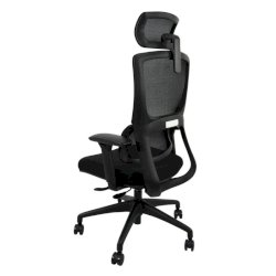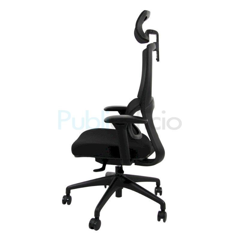 Poltrona semi-direzionale ergonomica girevole con schienale, poggiatesta e poggiareni in rete nera. Rivestimento del sedile in tessuto nero, compresa di braccioli. Taglia L. Utilizzo consigliato INTENSO H24. Portata massima 150 Kg. Struttura poliamide. Base NYLON. Ruote Ø 60 mm nylon. Sedile: materiale esterno: rivestita; materiale interno: faggio multistrato; spugna: spugna T 25 h 6 cm. Schienale: materiale esterno: rete; materiale interno: spugna. Meccanismi: elevazione a gas - contatto permanente - meccanismo syncro con 4 blocchi - autopesante antishock - traslatore. Certificazioni: Gas certificato TUV - DL 81/08; UNI EN 1335 B. Dimensioni: Altezza totale: 116 - 126 cm. Profondità totale: 70 cm. Altezza sedile (seduta da terra): 42 - 52 cm. Larghezza sedile: 52 cm. Larghezza del sedile con i braccioli: 65 cm. Profondità sedile: 45 - 55 cm. Altezza schienale: 75 cm. Larghezza schienale: 50 cm. Altezza braccioli da terra: 60 - 70 cm. Base: Ø 70 cm.