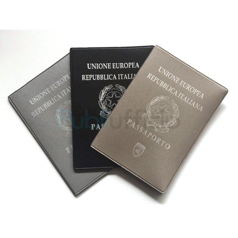 Porta passaporto in colori assortiti. Fustellatura per lettura dicitura nazionale.