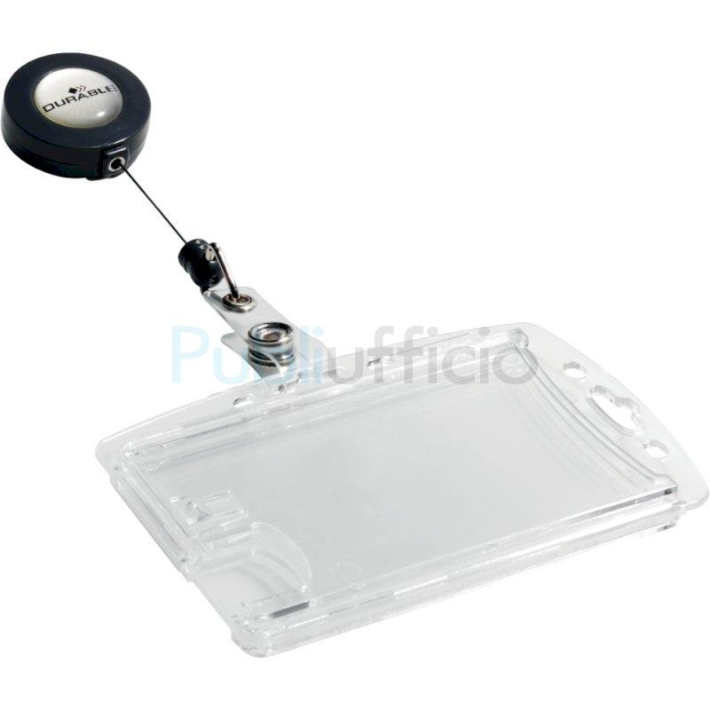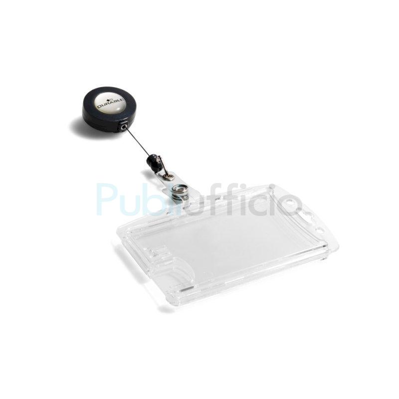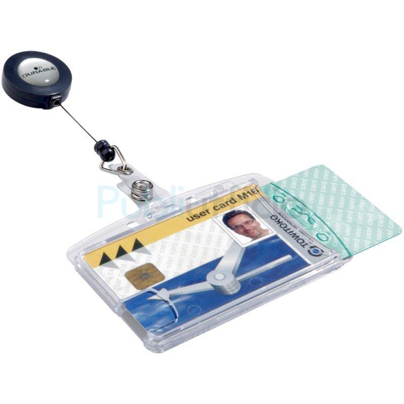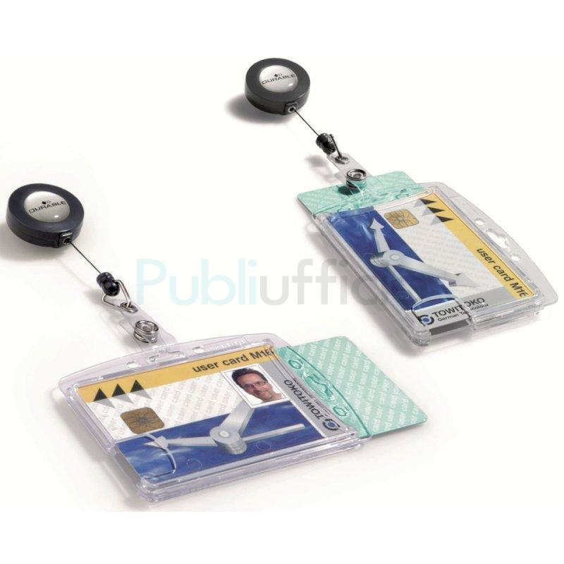 Portabadge Durable chiuso con chiocciola yo-yo per 2 tessere 54x87 mm - conf. 10 pz - 8224-19