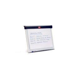Qualità affidabile dal 1971. Il cavalletto da scrivania Barracuda di dimensioni dimezzate è lavagna a fogli mobili portatile, lavagna cancellabile a secco e bacheca magnetica in uno! Ideale per riunioni tra due persone o presentazioni a piccoli gruppi, può essere aperto in pochi secondi su qualsiasi tavolo o scrivania. Sono inclusi borsa per il trasporto, blocco di fogli B1 e pennarello. Elegante e pratico - Portablocco a cavalletto Barracuda - da scrivania. Colore: blu.