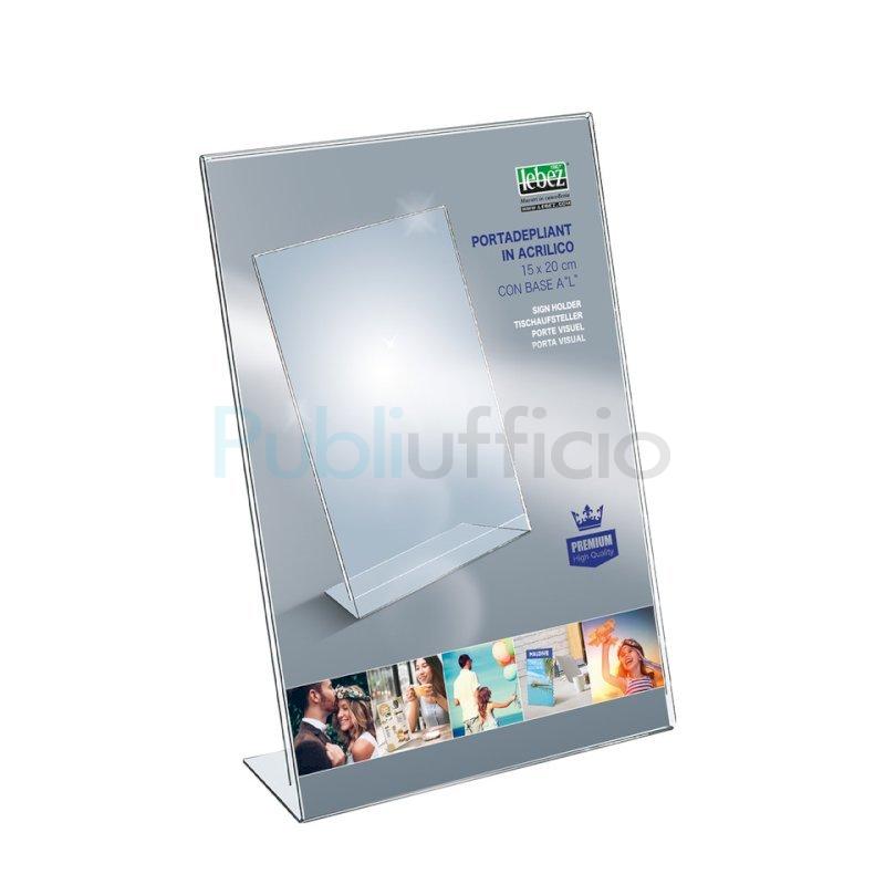 Portadepliant in acrilico con base a L Lebez formato 15x20 cm - verticale - trasparente - 7039