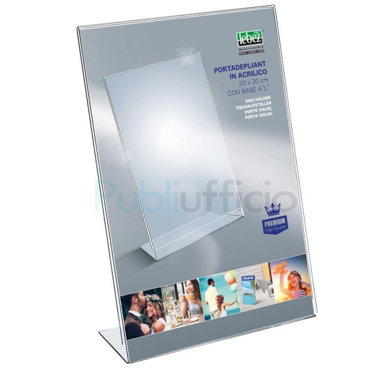 Portadepliant in acrilico con base a L Lebez formato 20x30 cm - verticale - trasparente - 7057