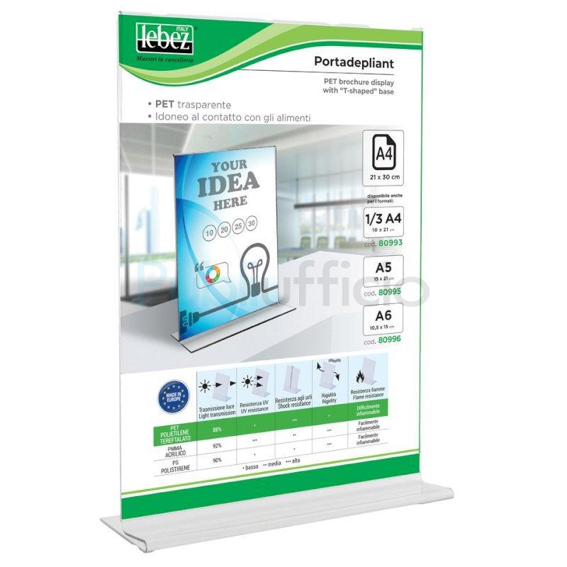 Portadepliant in PET Lebez con base a T formato A4 21x30cm - trasparente - 80994