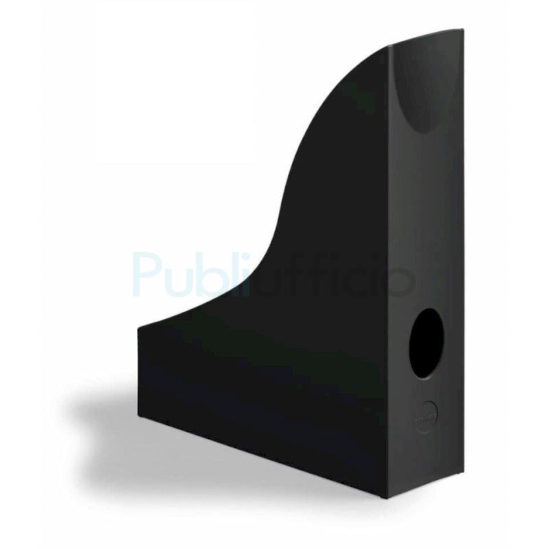 Pratico portariviste con foro di presa. Realizzato con plastica riciclata certificata Blue Angel in conformità con i requisiti RAL-ZU 30a, tutta la gamma è realizzata con plastica riciclata ed etichettata in conformità con lo standard EN ISO 11469. Ciò significa che, una volta riutilizzati, possono essere nuovamente smistati e riciclati. Ideale per riporre riviste, cataloghi e brochure in formato A4. Dimensioni: 73 x 306 x 241 mm (L x H x P).