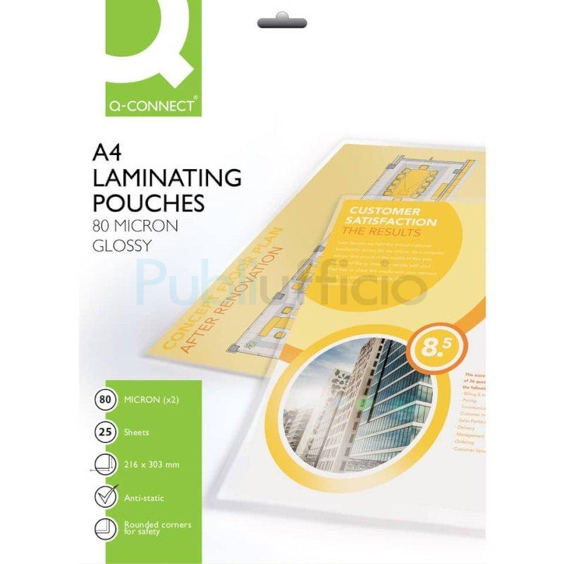 Pouches per plastificatrici Q-Connect 216x303 mm finitura lucida - 80 µm A4 - conf. 25 pz - KF04118