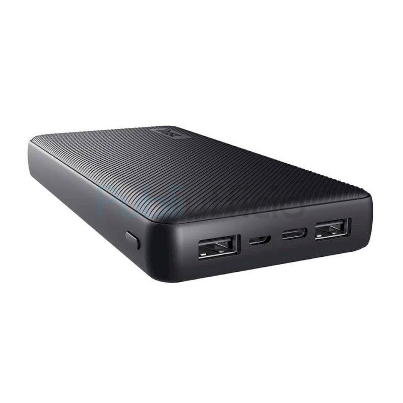 Powerbank ad alta capacità per fornire fino a 92 ore in più di uso del dispositivo. Colore: nero. Dotato di n°3 porte USB ( N°2 USB-A e N°1 USB-C). Peso: 440 g. Dimensioni: 157 x 79 x 22 mm. Capacità: 20.000 mAh. Voltaggio: 3,7 V. Cicli di ricarica: 500. Tempo di ricarica: 12 ore. Compatibile con tablet e smartphone. Contenuto della confezione: Powerbank, cavo di ricarica micro-USB di 25cm e manuale d'utente. Ricarica contemporaneamente tre telefoni o tablet. Ricarica il powerbank con il cavo micro-USB in dotazione o la porta USB-C. Design compatto adatto a stare in borsa. Ricarica rapida con la velocità massima tramite USB-C (15 W) o USB-A (12 W). La velocità di ricarica varia da un dispositivo all'altro.