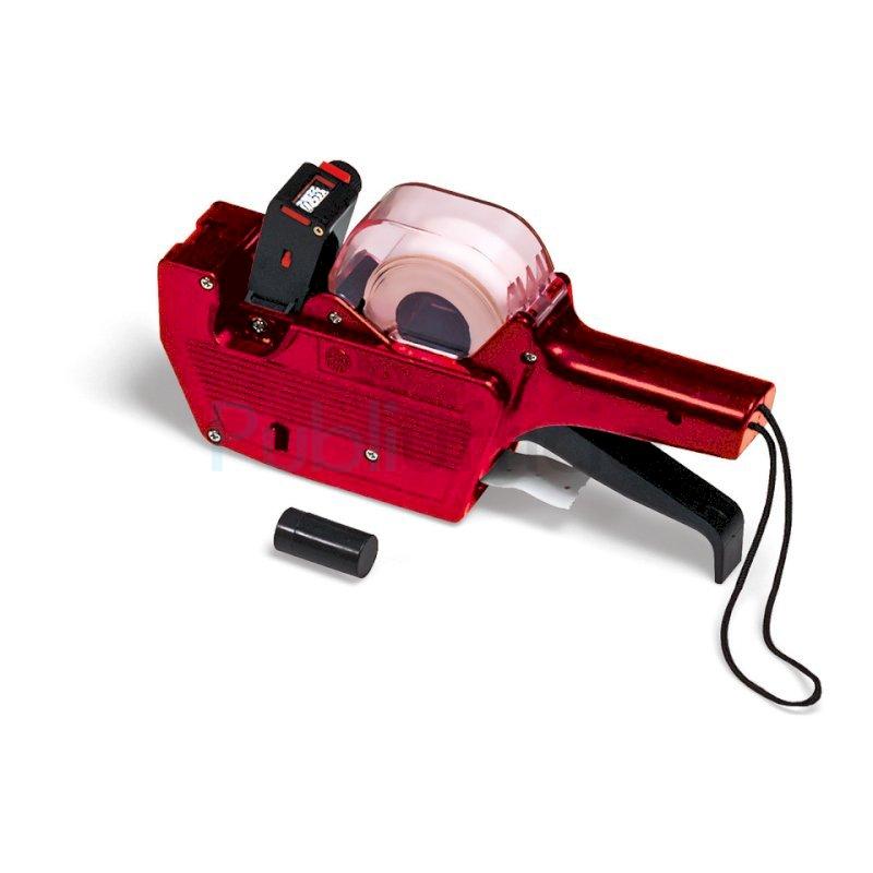 Prezzatrice realizzata in ABS a 8 colonne a pista singola. Completa di 1 rotolino di etichette 21x12 mm e 1 rullo inchiostrato. Colore rosso.