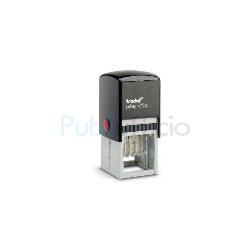 Timbro datario con testo autoinchiostrante personalizzato TRODAT PRINTY 4724 - 40 x 40 mm - Altezza caratteri data: 3 mm - max 3+3 righe. Personalizzazione dell’impronta disponibile nei colori NERO, BLU, VERDE, ROSSO. Leggero e compatto. Validità datario 12 anni. Massima qualità delle impronte. Inchiostro indelebile in conformità alla norma DIN ISO 14145-2. Modello cartuccia di ricambio Trodat 6/4924. Sostituzione della cartuccia semplice e pulita. .