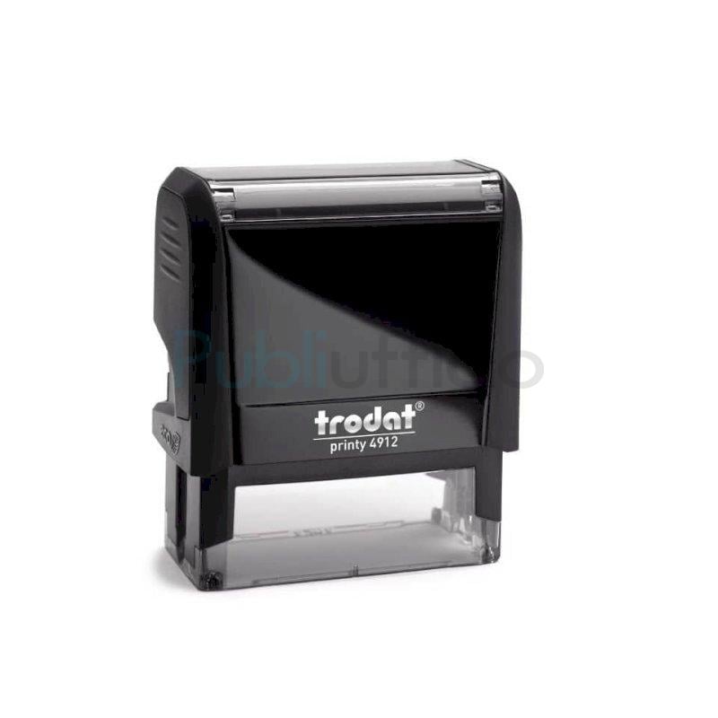Timbro di testo autoinchiostrante personalizzato TRODAT PRINTY 4912 ECO - 47 x 18 mm - max 5 righe testo. Personalizzazione dell’impronta disponibile nei colori NERO, BLU, VERDE, ROSSO. Leggero e compatto. Massima qualità delle impronte. Inchiostro indelebile in conformità alla norma DIN ISO 14145-2. Modello cartuccia di ricambio Trodat 6/4912. Sostituzione della cartuccia più semplice e pulita. Posizionamento preciso grazie alla base trasparente. Prodotto in materiale riciclato post consumo.