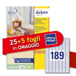Etichette bianche rimovibili Avery laser/inkjet 189 et./foglio conf.25+5 ff OMAGGIO 25,4x10 mm - L4731REV30P