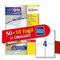Etichette bianche Avery Ultragrip & Jamfree™ adesivo permanente laser 4 et./foglio conf. 50+10 ff OMAGGIO