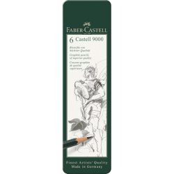 Astuccio in metallo 6 matite Faber-Castell 9000 - gradazioni assortite - 119063