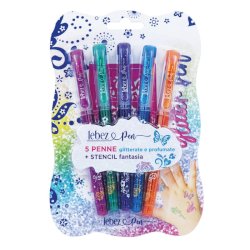 Penna gel glitter con cappuccio e inchiostro profumato + stencil Lebez - conf. 8 colori assortiti - 5320