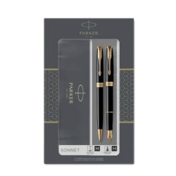 Gift set duo Parker Sonnet Black GT penna a sfera M + penna stilografica F inchiostro blu - 2093371