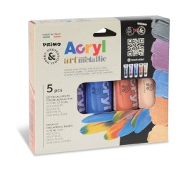 Colore acrilico Primo in bottiglia PET con tappo dosatore 75 ml tinte metal - conf. 5 pezzi - 4213TATM5MET