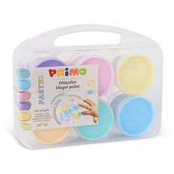Tempera a dita Primo 100 g - valigetta 6 colori assortiti pastello in vasetti in polipropilene - 2212TD6PAST