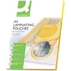 Pouches per plastificatrici Q-Connect 2x80 µm finitura lucida A4 Conf. 100 pezzi - KF04114