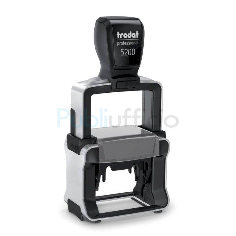 Timbro personalizzato TRODAT PROFESSIONAL 5200 4.0 - 41 x 24 mm - max 6 righe. Personalizzazione dell’impronta disponibile nei colori NERO, BLU, VERDE, ROSSO. Solida struttura in acciaio inossidabile. Impugnatura ergonomica per uso professionale. Massima qualità delle impronte. Inchiostro indelebile in conformità alla norma DIN ISO 14145-2. Modello cartuccia di ricambio Trodat 6/50. Sostituzione della cartuccia più semplice e pulita. Semplice posizionamento dell'impronta. Prodotto eco sostenibile.