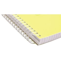 Quaderno formato A5 ad 1 rigo con spirale e con fori archivio da 80 ff. Grammatura da 70gr, copertina e retroblocco in polipropilene 500 my. Spirale in plastica trasparente riciclabile. Colori neon trasparenti assortiti.