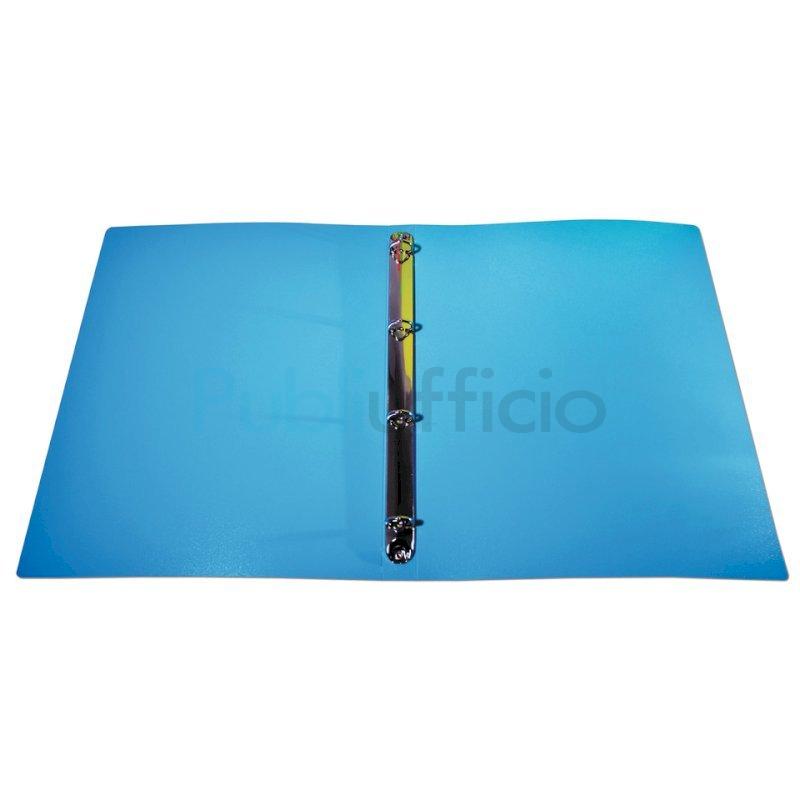 Raccoglitori in polipropilene a 4 anelli tondi colori fluo, diametro 30 mm. Disponibili 6 colori assortiti.