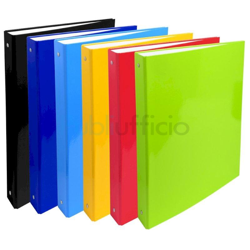 Raccoglitore Exacompta rivestito con carta plastificata. Interno in carta bianca. 4 anelli diametro 30 mm. Confezione da 24 colori assortiti.