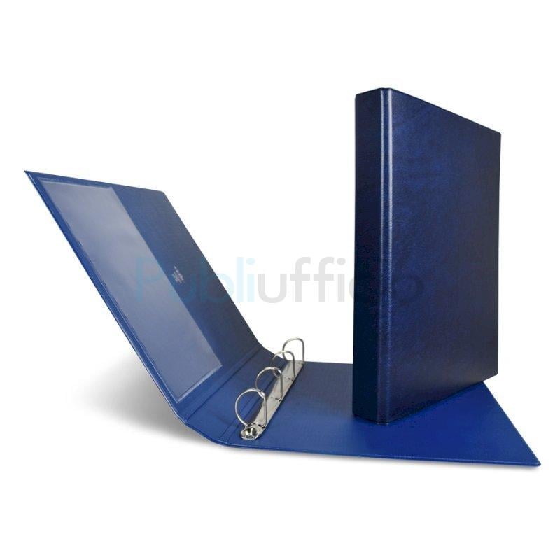 Raccoglitore in Colpan 2000® (cartone rivestito in PVC espanso) . Tasca interna trasparente. Meccanismo a 4 anelli D Ø 30 mm. Colore blu.