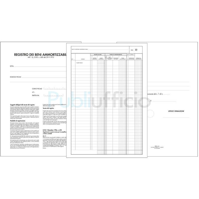 Registro dei beni ammortizzabili. Numerato da 1-30. Realizzato in carta usomano. Formato chiuso A4: 21 x 29,7 cm. Disponibile in confezione da 10 blocchi.