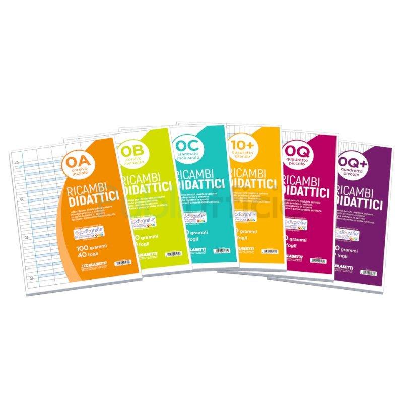 Ricambi Didattici per quaderni ad anelli con banda rinforzata in PVC antistrappo. Studiati appositamente per disgrafia. Sono realizzati in formato A4 in carta da 100 grammi. 40 fogli. Questo articolo è prodotto con energia solare, è certificato Federottica ed è testato e approvato dall’Associazione Europea Disgrafie.