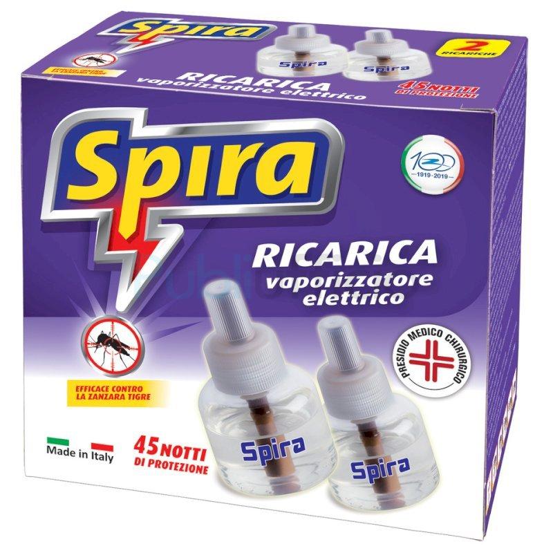 Ricarica liquida doppia per vaporizzatore Spira. 45 notti di protezione. Efficace contro la zanzara tigre. Con tappo di sicurezza CLP a prova di bambino. 2 ricariche.