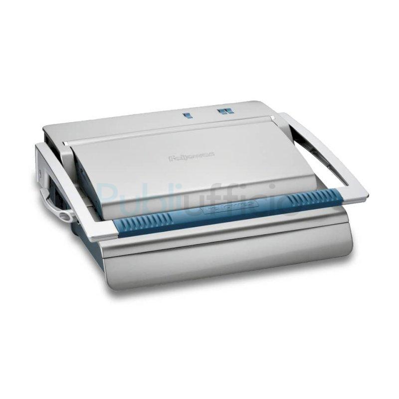 | Altre caratteristiche: | per finitura professionale. Punzoni selezionabili per rilegare documenti A4 e A5. Controllo di chiusura preselezionabile per chiudere agevolmente i dorsi. Guida regolabile del margine laterale per un allineamento accurato dei fogli. Ampio cassetto portaoggetti frontale con misuratore brevettato dorsi e documenti. Include starter kit per 20 documenti |