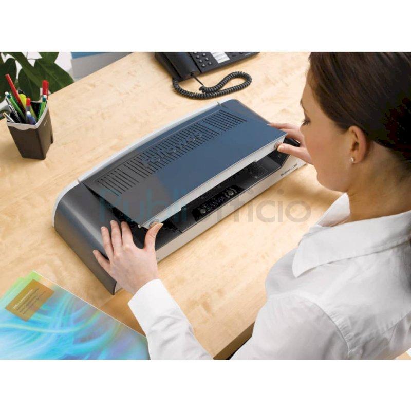 Per uso frequente in ufficio. Si possono rilegare simultaneamente più documenti fino ad un massimo di 300 fogli (30mm). Ciclo di rilegatura variabile per documenti di diversi formati. La barriera di sicurezza HeatShield previene contatti accidentali con la piastra riscaldante. La Modalità Riposo si attiva dopo un periodo di inattività, riducendo il consumo di energia. La guida al formato del documento aiuta l'utente a scegliere facilmente il ciclo di rilegatura più adatto. Pronta all'uso in 4 minuti. Spie sonore e visive indicano con chiarezza quando la macchina è pronta. Si richiude completamente piatta per conservarla agevolmente. Piastra di raffreddamento sul retro. Garanzia: 2 anni.