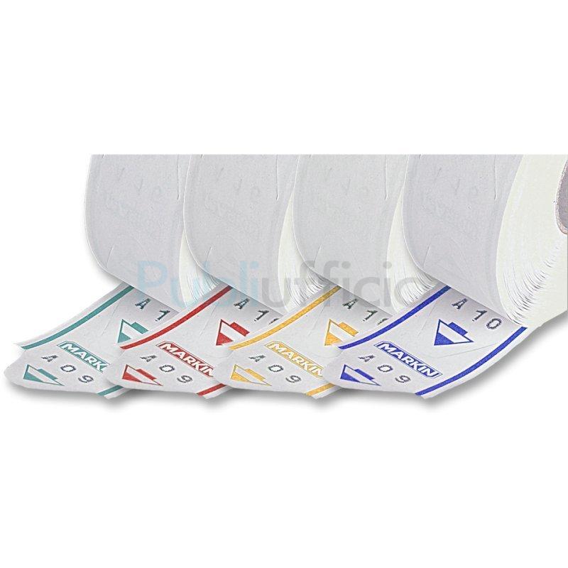 Rotolo eliminacode Markin alfanumerico da 2000 tickets - conf. 20 pz - colori assortiti - Y611ASS