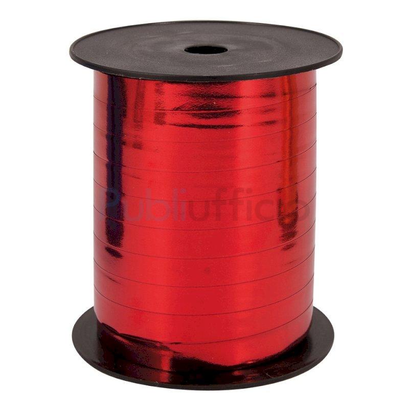Rotolo di nastro in polipropilene. Formato 10 mm x 250 m. Colore rosso lucido.